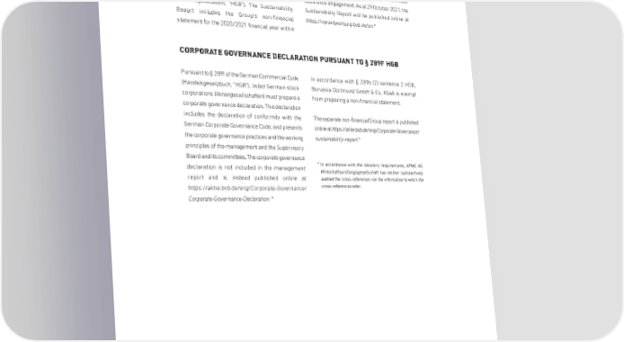 GROUP MANAGEMENT REPORT SEPARATE NON-FINANCIAL GROUP REPORT Please see the 2020/2021 Sustainability Report the meaning of §§ 315b, 315c in conjunction with with regard to the disclosures within the meaning §§ 289c to 289e HGB, which was subject to a limited of §§ 289b, 315b of the German Commercial Code assurance engagement. As at 29 October 2021, the (Handelsgesetzbuch, "HGB"). The Sustainability Sustainability Report will be published online at Report includes the Group's non-financial https://verantwortung.bvb.de/en.* statement for the 2020/2021 financial year within CORPORATE GOVERNANCE DECLARATION PURSUANT TO § 289F HGB Pursuant to § 289f of the German Commercial Code In accordance with § 289b (2) sentence 2 HGB, (Handelsgesetzbuch, "HGB"), listed German stock Borussia Dortmund GmbH & Co. KGaA is exempt corporations (Aktiengesellschaften) must prepare a from preparing a non-financial statement. corporate governance declaration. This declaration includes the declaration of conformity with the The separate non-financial Group report is published German Corporate Governance Code, and presents online at https://aktie.bvb.de/eng/Corporate-Governance/ the corporate governance practices and the working sustainability-report.* principles of the management and the Supervisory Board and its committees. The corporate governance declaration is not included in the management * In accordance with the statutory requirements, KPMG AG Wirtschaftsprüfungsgesellschaft has neither substantively report and is instead published online at audited the cross-references nor the information to which the https://aktie.bvb.de/eng/Corporate-Governance/ cross-references refer. Corporate-Governance-Declaration. * 21th match day 1/8 final, first leg UCL 13 February 2021 17 February 2021 BVB - TSG Hoffenheim 2:2 FC Sevilla - BVB 2:3 135