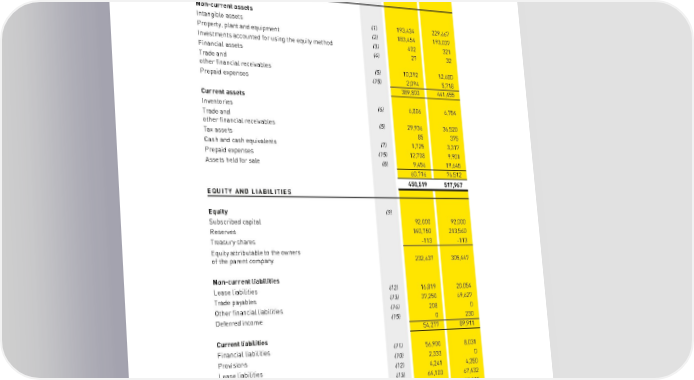 BORUSSIA DORTMUNDGmbH & Co. Kommanditgesellschaft auf Aktien, Dortmund CONSOLIDATED FINANCIAL STATEMENTS CONSOLIDATED STATEMENT OF FINANCIAL POSITION of Borussia Dortmund GmbH & Co. Kommanditgesellschaft auf Aktien, Dortmund EUR '000 Note 30/06/2021 30/06/2020 ASSETS Non-current assets Intangible assets (1) 193,434 229,667 Property, plant and equipment (2) 183,454 193,037 Investments accounted for using the equity method (3) 402 321 Financial assets (4) 27 32 Trade and other financial receivables (5) 10,392 12,680 Prepaid expenses (15) 2,094 5,718 389,803 441,455 Current assets Inventories (6) 6,806 6,754 Trade and other financial receivables (5) 29,936 36,520 Tax assets 85 375 Cash and cash equivalents (7) 1,725 3,317 Prepaid expenses (15) 12,708 9,901 Assets held for sale (8) 9,456 19,645 60,716 76,512 450,519 517,967 EQUITY AND LIABILITIES Equity (9) Subscribed capital 92,000 92,000 Reserves 140,750 213,560 Treasury shares -113 -113 Equity attributable to the owners of the parent company 232,637 305,447 Non-current liabilities Lease liabilities (12) 16,819 20,054 Trade payables (13) 37,250 69,627 Other financial liabilities (14) 208 0 Deferred income (15) 0 230 54,277 89,911 Current liabilities Financial liabilities (11) 56,900 8,031 Provisions (10) 2,333 0 Lease liabilities (12) 4,241 4,350 Trade payables (13) 64,103 67,432 Other financial liabilities (14) 30,901 39,115 Tax liabilities 40 40 Deferred income (15) 5,087 3,641 163,605 122,609 450,519 517,967 The relevant sections in the notes to the consolidated statement of financial position can be found on the following pages: (1) – p. 197 (2) – p. 198 (3) (4) – p. 200 (5) – p. 201 (6) (7) (8) – p. 202 (9) – p. 203 (10) (11) – p. 204 | | | | | | (12) (13) (14) – p. 205 (15) – p. 206 | 176