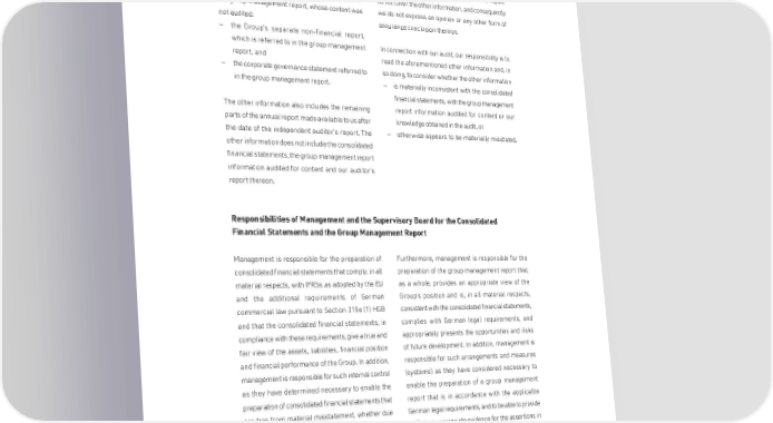 BORUSSIA DORTMUNDGmbH & Co. Kommanditgesellschaft auf Aktien, Dortmund Other information Management and/or the Supervisory Board are/is Our opinions on the consolidated financial responsible for the other information. The other statements and on the group management report information comprises the following components of do not cover the other information, and consequently the group management report, whose content was we do not express an opinion or any other form of not audited: assurance conclusion thereon. – the Group's separate non-financial report, which is referred to in the group management In connection with our audit, our responsibility is to report, and read the aforementioned other information and, in – the corporate governance statement referred to so doing, to consider whether the other information in the group management report. – is materially inconsistent with the consolidated financial statements, with the group management The other information also includes the remaining report information audited for content or our parts of the annual report made available to us after knowledge obtained in the audit, or the date of the independent auditor's report. The – otherwise appears to be materially misstated. other information does not include the consolidated financial statements, the group management report information audited for content and our auditor's report thereon. Responsibilities of Management and the Supervisory Board for the Consolidated Financial Statements and the Group Management Report Management is responsible for the preparation of Furthermore, management is responsible for the consolidated financial statements that comply, in all preparation of the group management report that, material respects, with IFRSs as adopted by the EU as a whole, provides an appropriate view of the and the additional requirements of German Group's position and is, in all material respects, commercial law pursuant to Section 315e (1) HGB consistent with the consolidated financial statements, and that the consolidated financial statements, in complies with German legal requirements, and compliance with these requirements, give a true and appropriately presents the opportunities and risks fair view of the assets, liabilities, financial position of future development. In addition, management is and financial performance of the Group. In addition, responsible for such arrangements and measures management is responsible for such internal control (systems) as they have considered necessary to as they have determined necessary to enable the enable the preparation of a group management preparation of consolidated financial statements that report that is in accordance with the applicable are free from material misstatement, whether due German legal requirements, and to be able to provide to fraud or error. sufficient appropriate evidence for the assertions in the group management report. In preparing the consolidated financial statements, management is responsible for assessing the Group's The supervisory board is responsible for overseeing ability to continue as a going concern. They also have the Group's financial reporting process for the the responsibility for disclosing, as applicable, matters preparation of the consolidated financial statements related to going concern. In addition, they are and of the group management report. responsible for financial reporting based on the going concern basis of accounting unless there is an intention to liquidate the Group or to cease operations, or there is no realistic alternative but to do so. 228